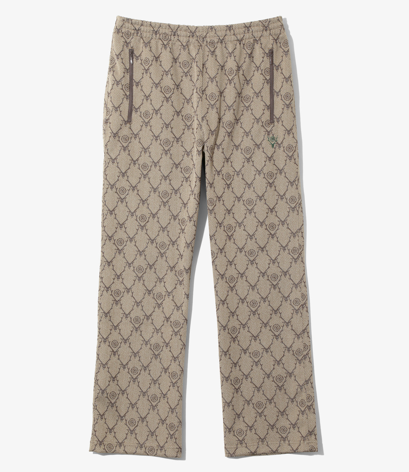 〈SOUTH2 WEST8〉のアイコンでもあるスカル&ターゲットがジャカード織の総柄で表現された、インパクト十分のトレーナーパンツ。通気性や伸縮性に富んだポリエステルジャージーを使用しており、快適な履き心地の良さも魅力です。ややゆとりのあるストレートシルエットで、バックウエストに備えたジップポケットも特徴的なデザインです。タウンユースから本格アウトドアまで幅広く活躍するアイテム。同素材でトレーナージャケットやVネックのプルオーバーシャツも展開され、セットアップでも着用が可能です。今季はグレイとブラウンの2色展開。