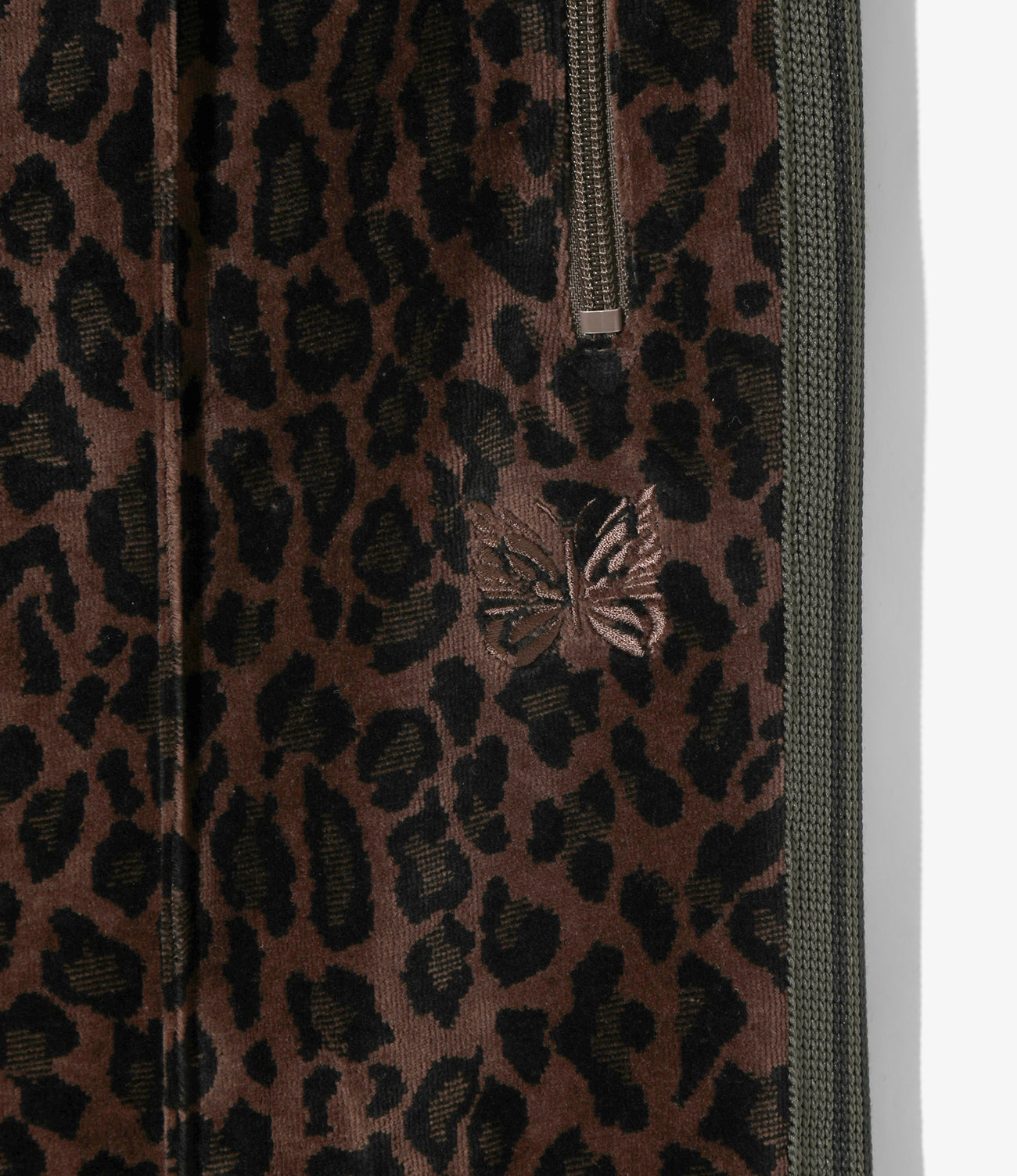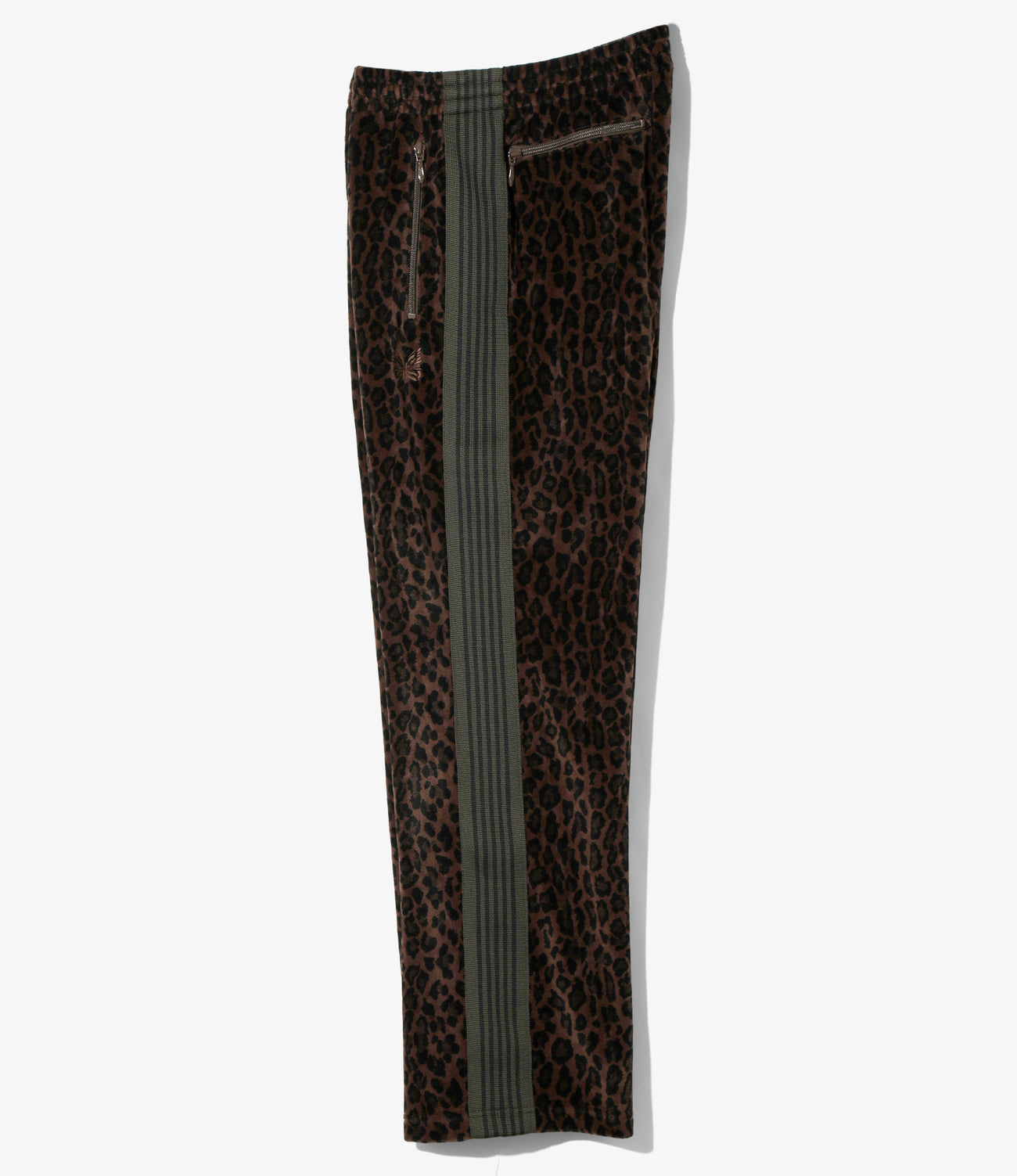 コレクションのためにオリジナルにデザインされたレオパード柄のベロア生地を使用。ベロア特有の光沢感がラグジュアリーな印象に。サイドには同系色のラインテープが施されています。同素材のトラックフーディとH.D.トラックパンツをご用意しており、セットアップでの着用も可能です。ブラウン、ブラックの2色展開。