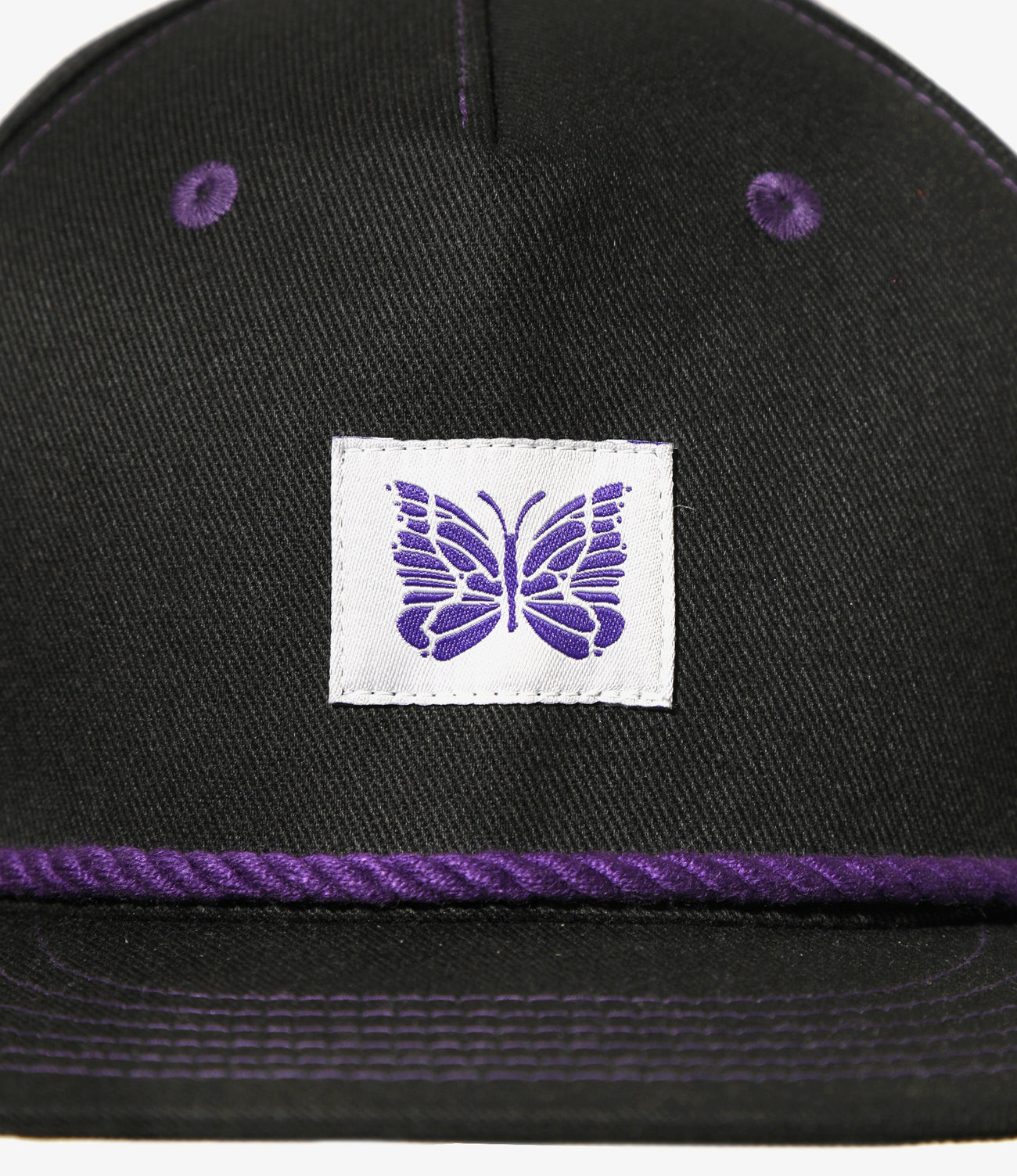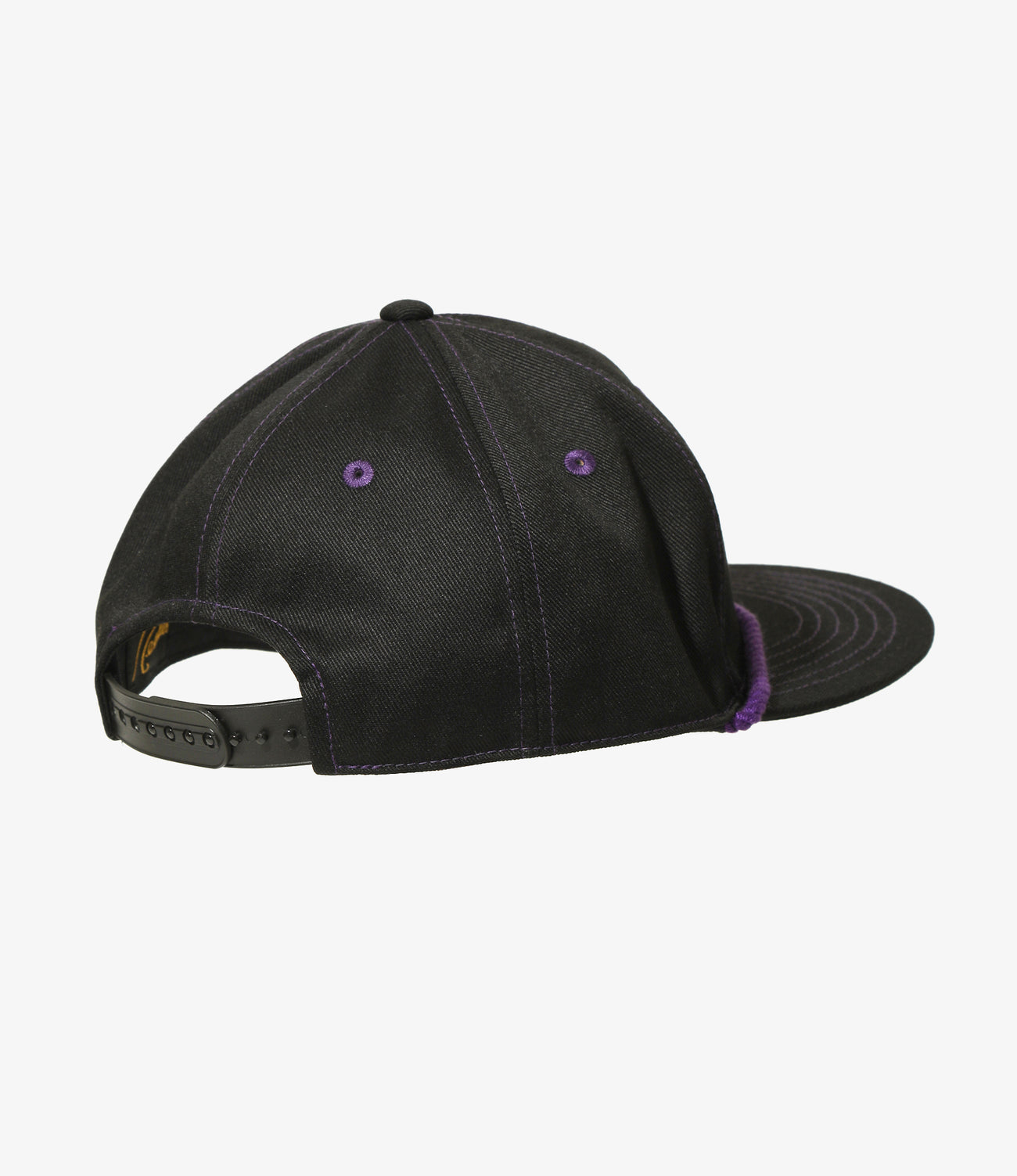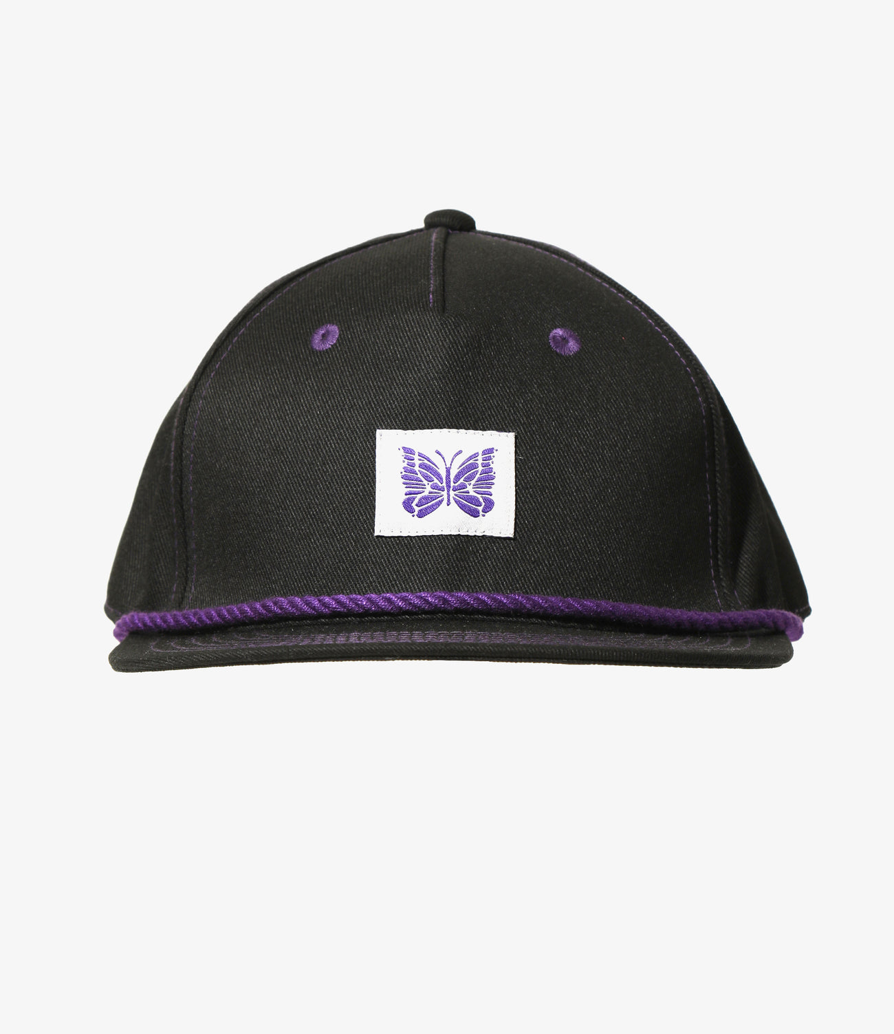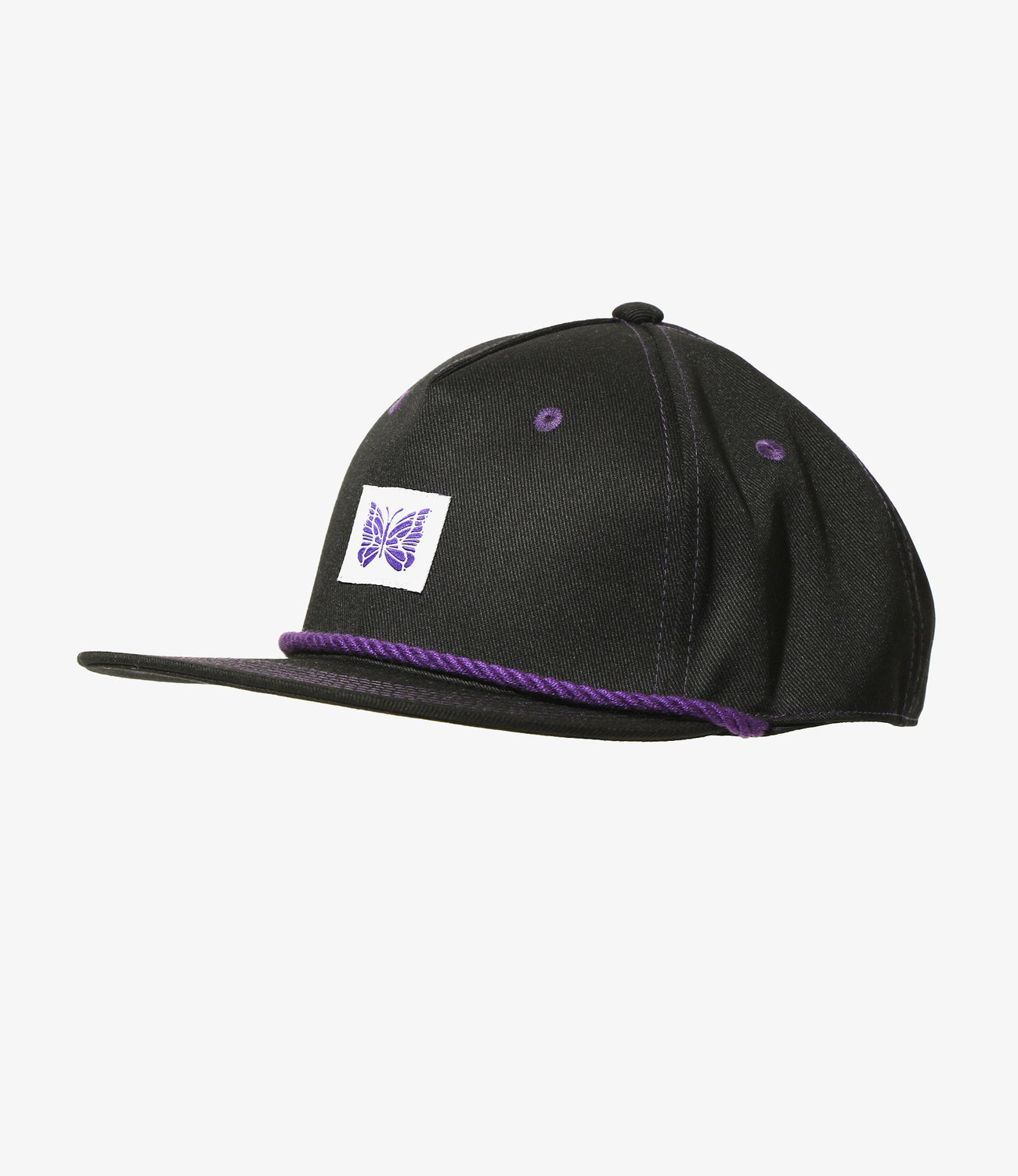 フロントにパピヨンのタグをあしらったベースボールキャップ。ブリムはフラットに、後ろはアジャスターを設けてサイズ調整可能にしています。キャップロープとステッチのアクセントカラーがクラシックな雰囲気を演出しています。カラーはバーガンディ、グリーン、ブラックの3色展開。