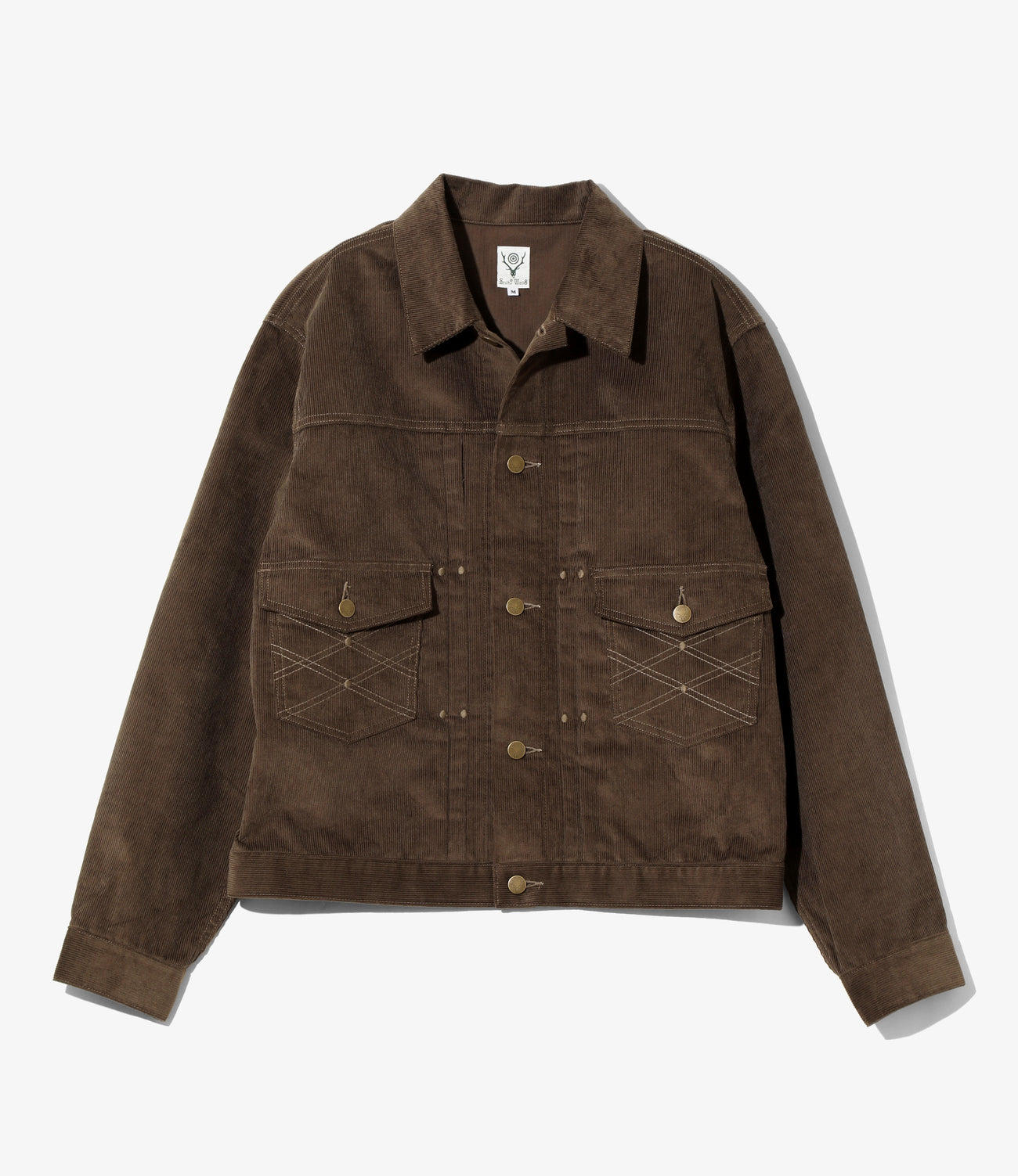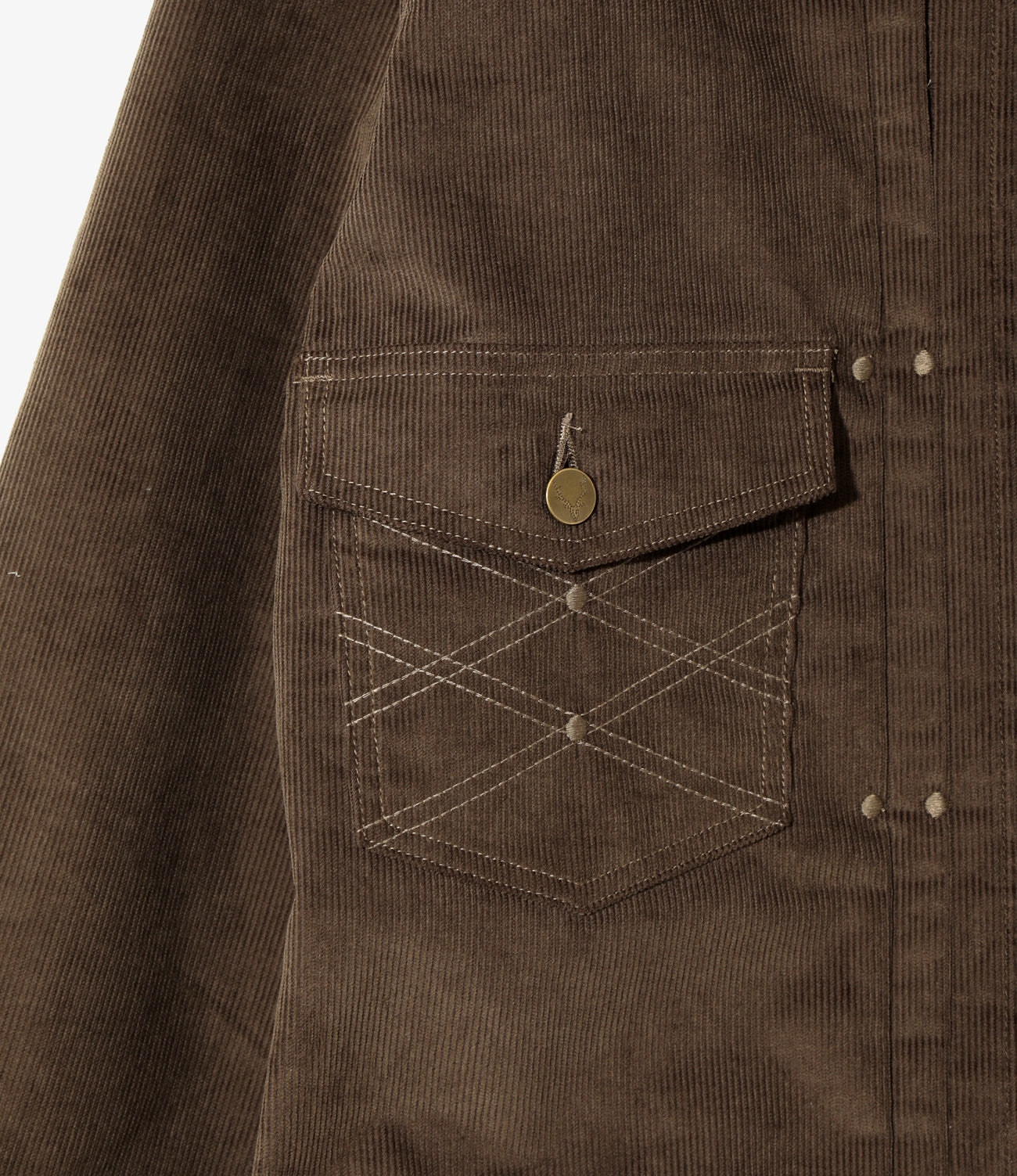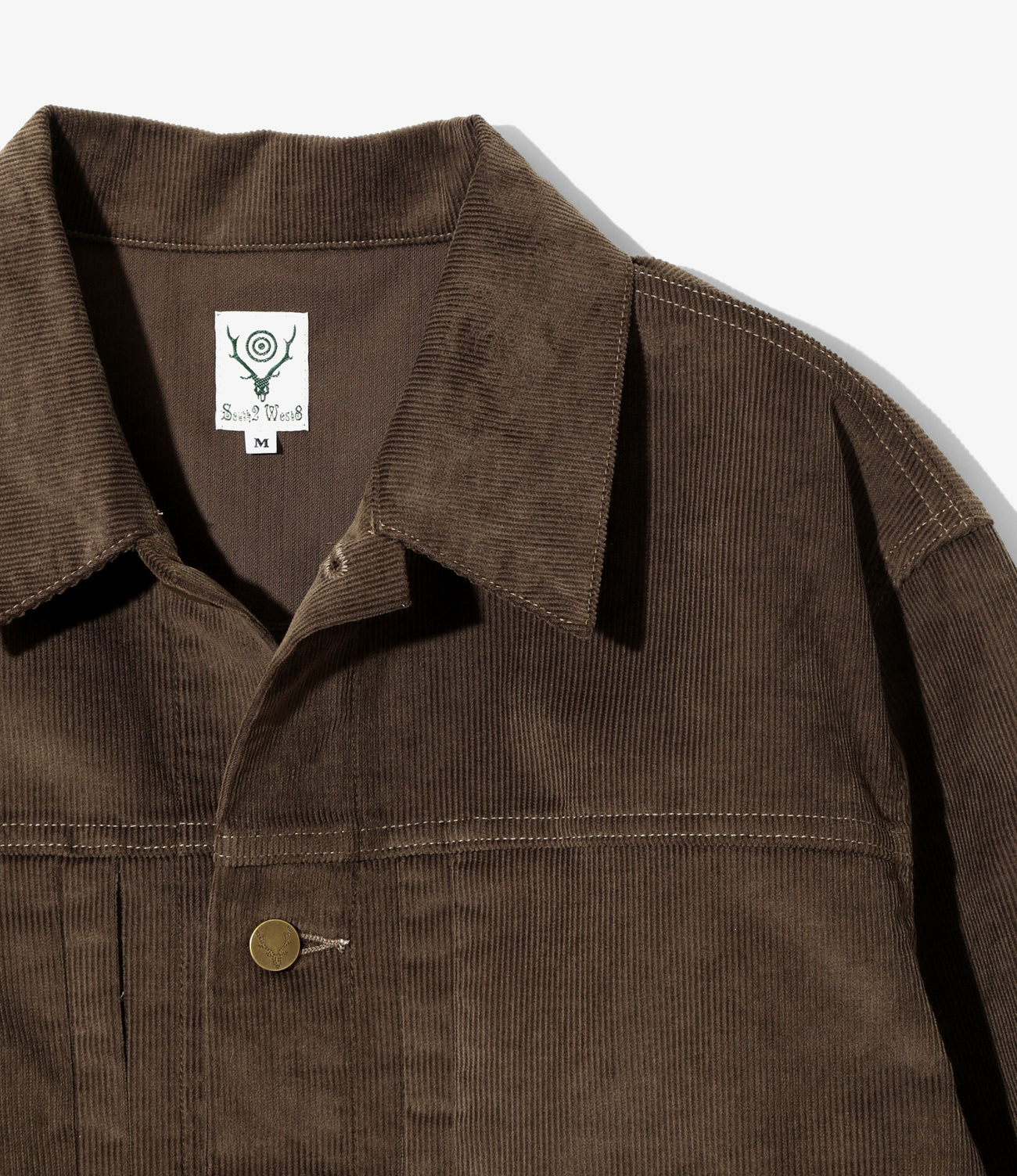 オーセンティックなジーンジャケットをベースにデザインされたトラッカージャケット。やや短めな丈とスッキリとしたシルエットが特徴的。シャツやTシャツなどとのレイヤードスタイルにも幅広く対応します。13Wのコーデュロイを使用したカジュアルな一着です。