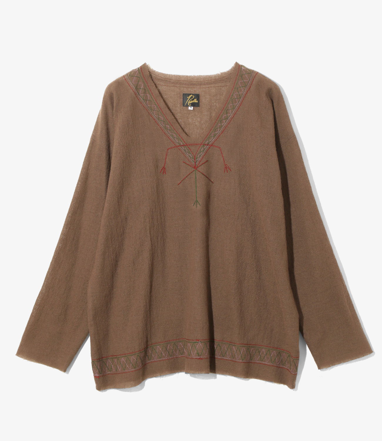 やや着丈が長くゆったりとしたシルエットが特徴のチュニック。ウールガーゼは非常に軽く柔らかで、温かみある素材は秋冬のレイヤードやシーズンの変わり目におすすめです。カットオフした裾や刺繍など、随所にこだわりを感じる一着。