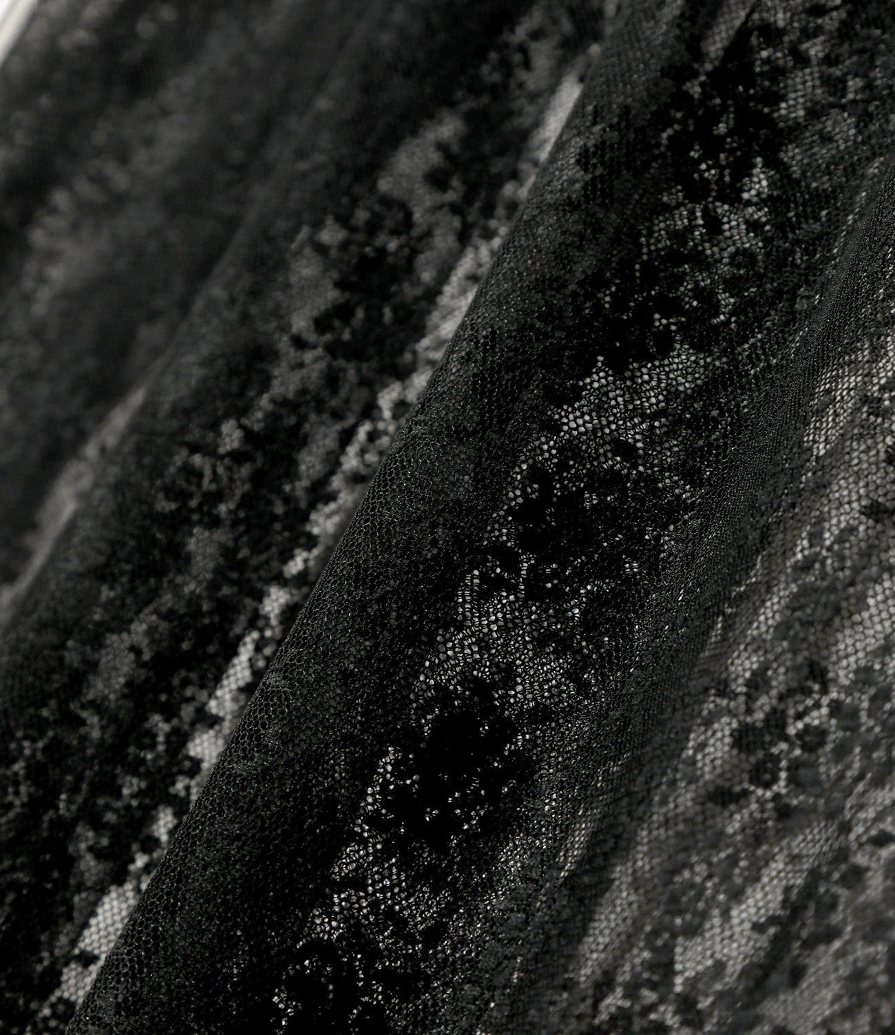 軽量で透け感があり、レイヤード次第で様々なコーディネートがお楽しみいただける定番のVネックカーディガン。立体的に編み上げたラッセルレース素材は、ポリエステル特有の軽さと耐久性に加え、透け感が生む繊細な表情が特徴です。