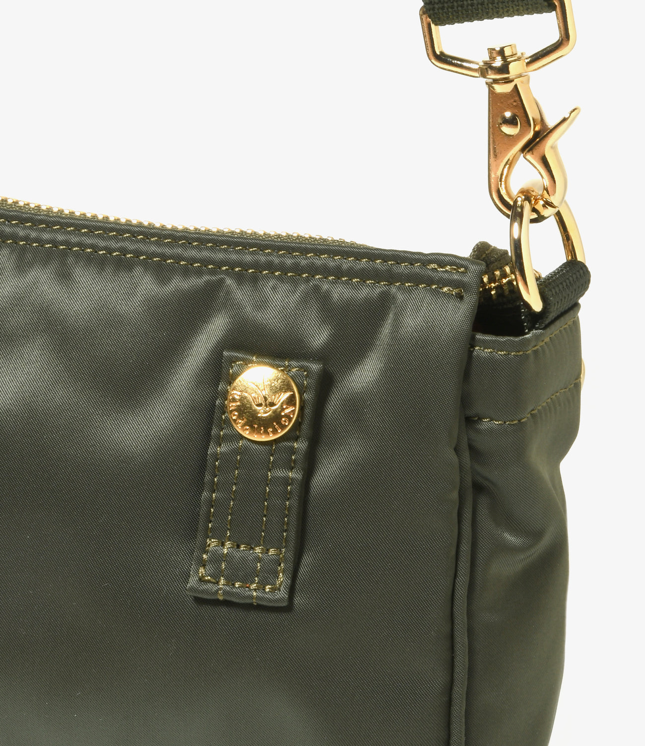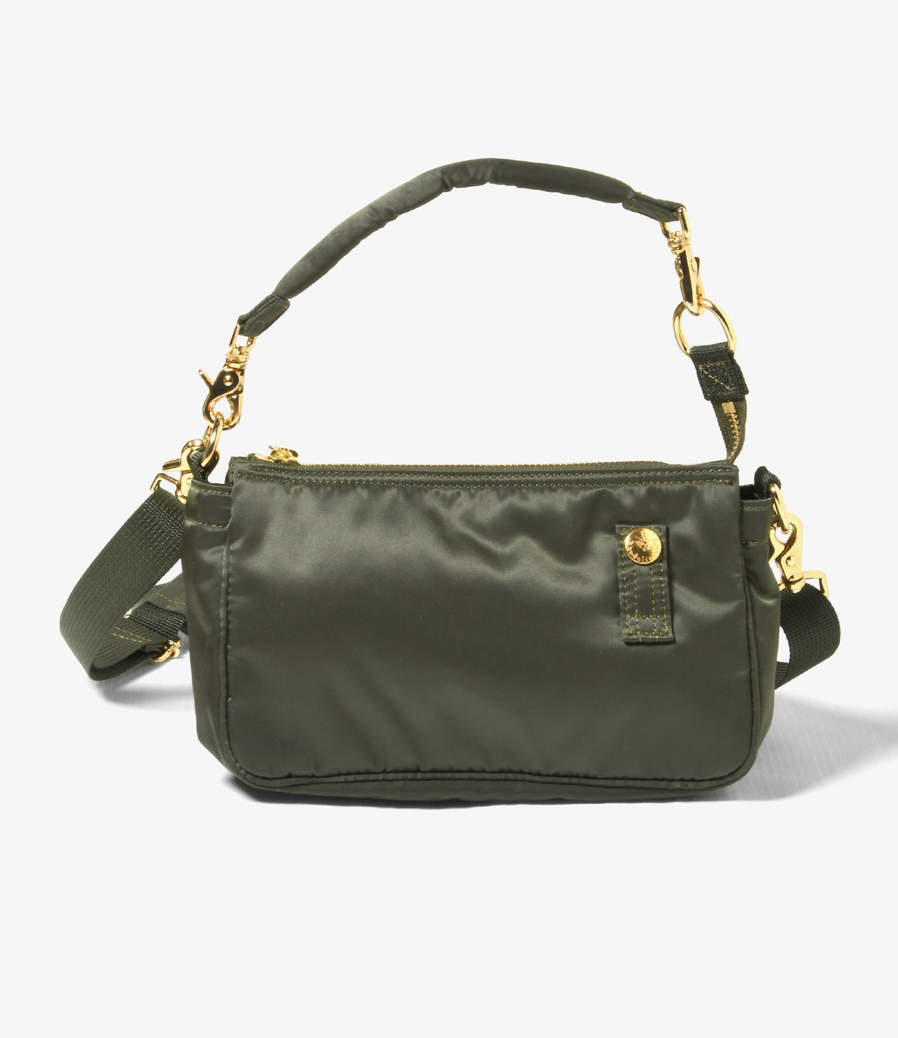 <RHODOLIRION>の定番であるJumper Dressと同素材であるナイロン100%のツイル生地を採用した新型のマルチウェイポシェットです。ヘルメットや酸素マスクなどを持ち運ぶために誕生したといわれるヘルメットバッグをベースに、ポシェットタイプに落とし込みました。前面にはキーホルダータブを、そして背面にはカードを収納できるポケットを搭載しました。ショルダー、ハンドバック、クラッチバックの3タイプの持ち方が可能。シャイニーなボディが華やかな印象を際立たせるアイテムです。