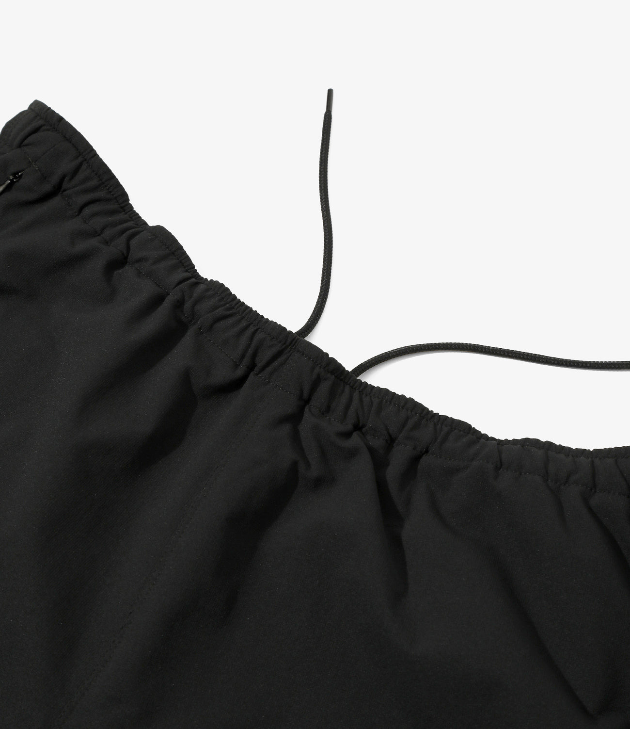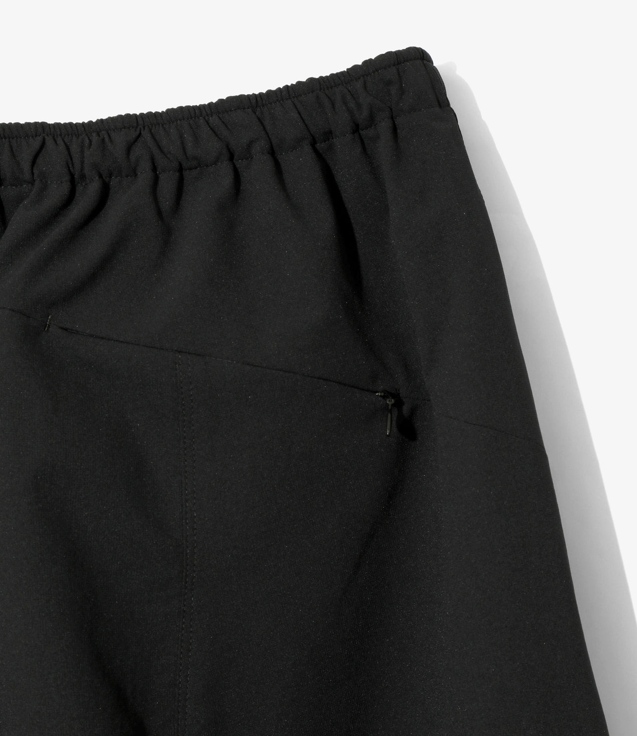 シンプルなデザインに、機能的なディテールをふんだんに取り入れた一本。身体の自由な動きを確保する立体構造や、ジップポケット、裾のシャーリング仕様など多くの機能を備えています。吸収速乾のポリエステル素材で、夏場やアクティブなシーンに活躍する優れた一本です。