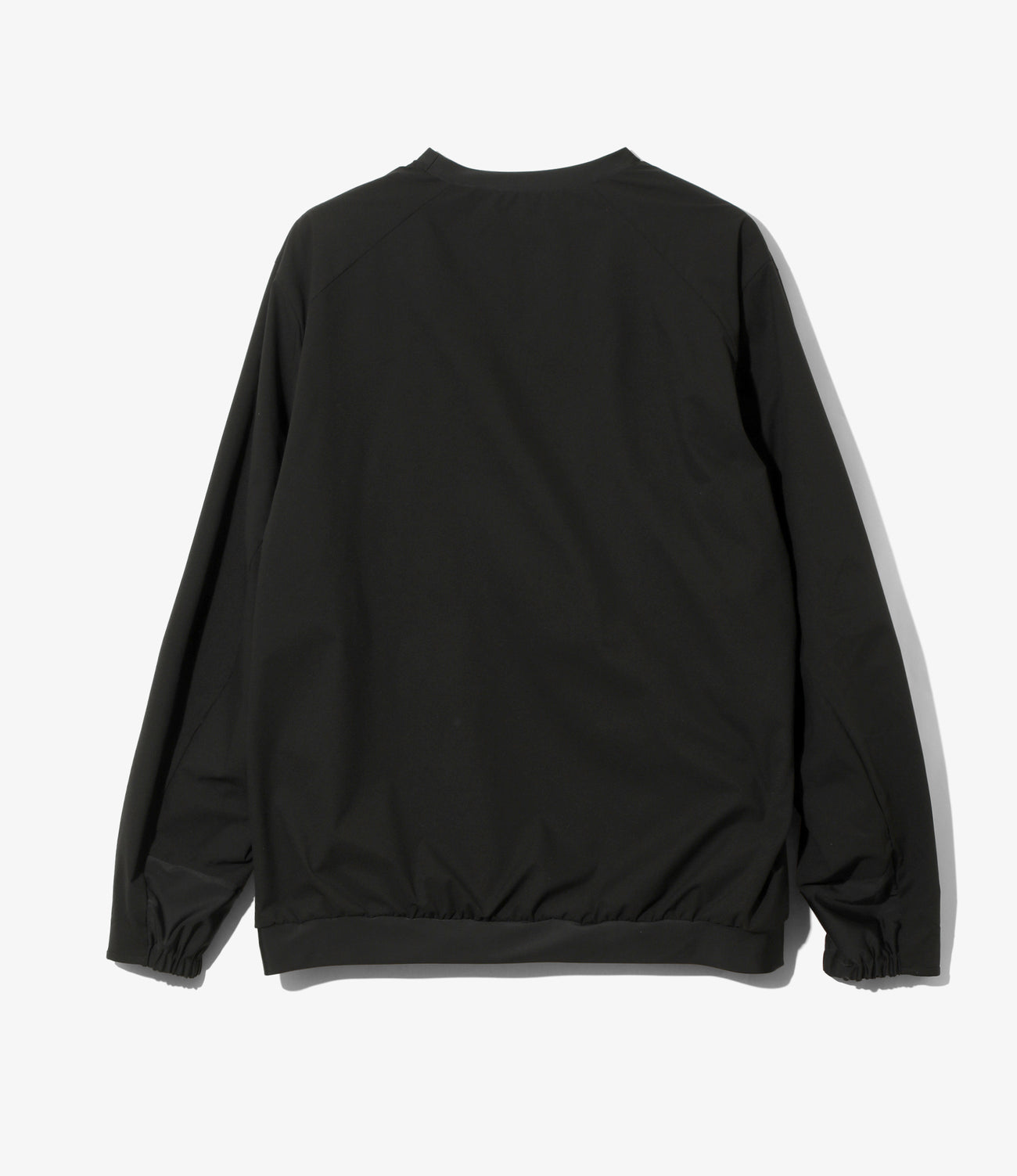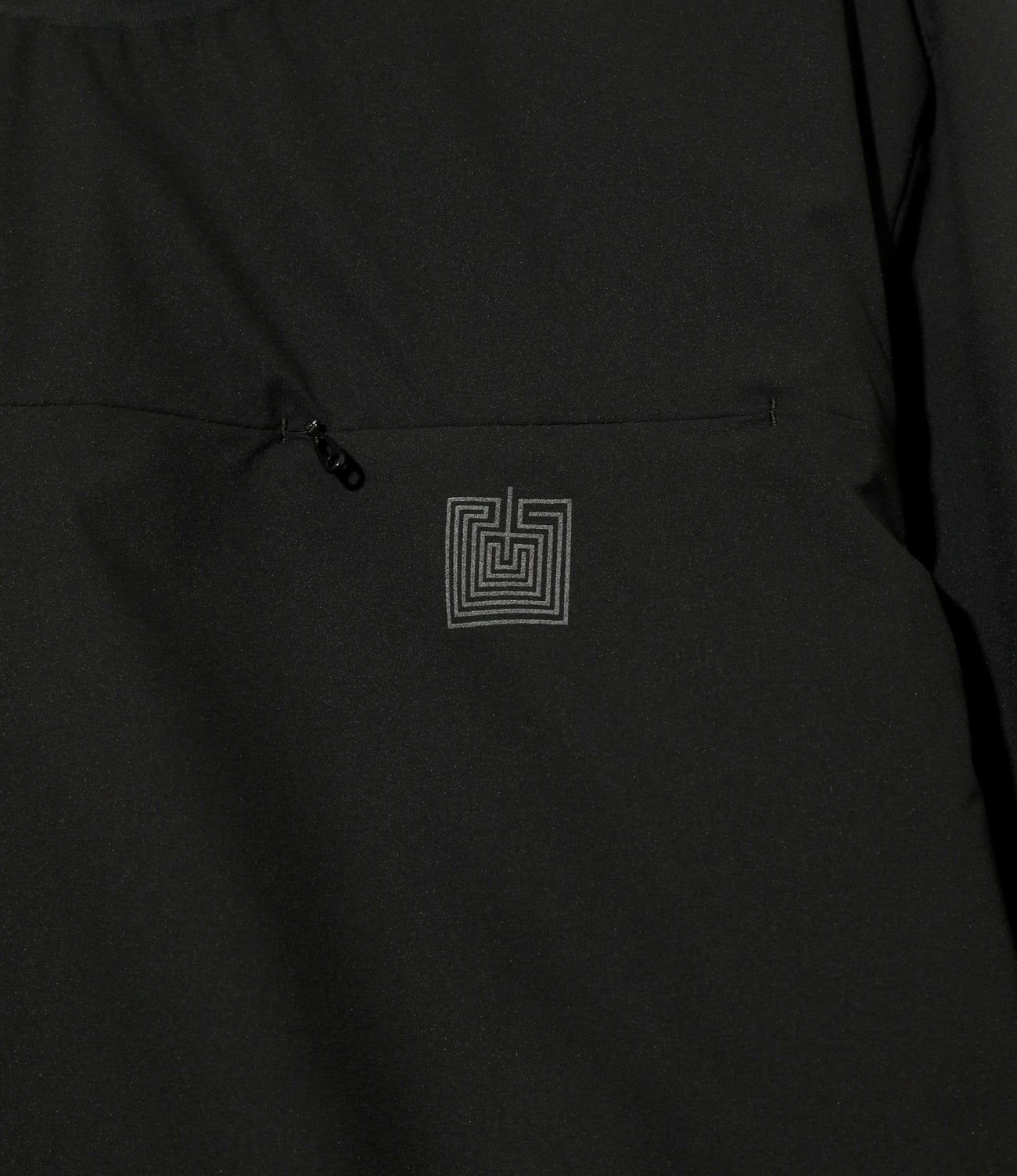 胸のジップポケットや脇の切り替え、袖のシャーリングなど、シンプルながらギミックが光るウィンドシャツ。断熱効果のある素材を採用し、内側の起毛が空気を多く含むことで保温性を高めています。肌寒い季節の羽織りとして重宝する一着です。
