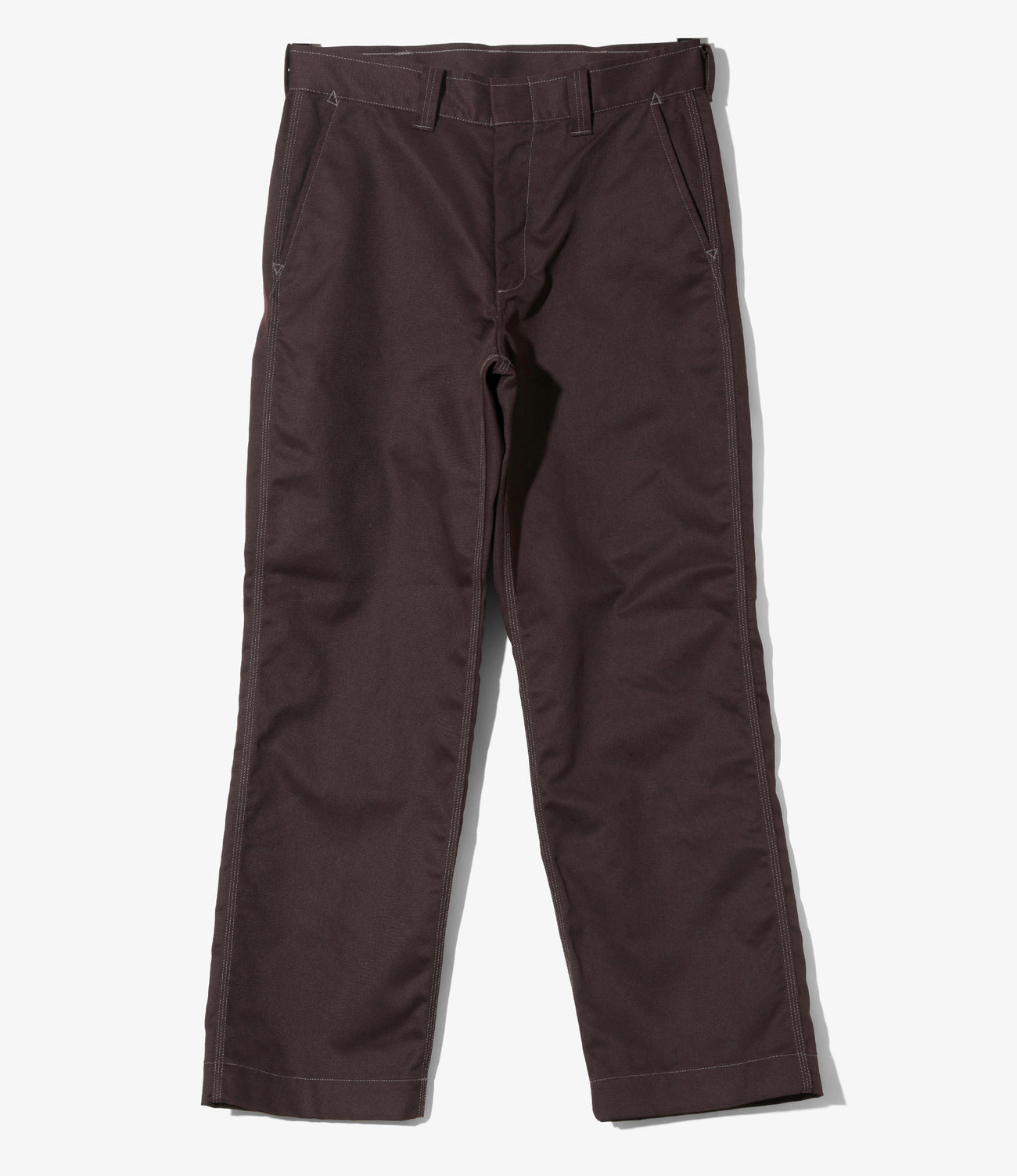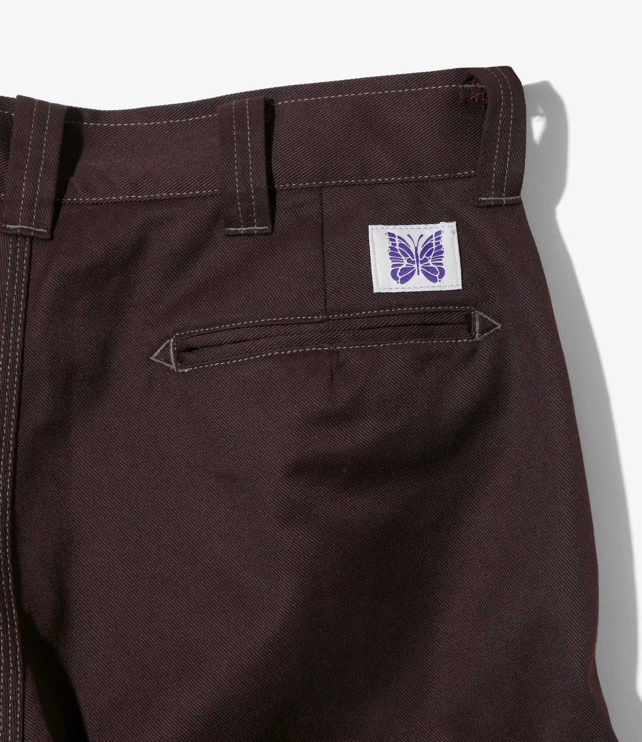 シンプルなワークパンツですが、〈NEEDLES〉らしいアレンジを加えて登場しました。背面の両玉縁ポケットや、シックなカラーのポリエステルコットン地に映えるステッチカラーが、特徴的で目を引くデザインになっています。