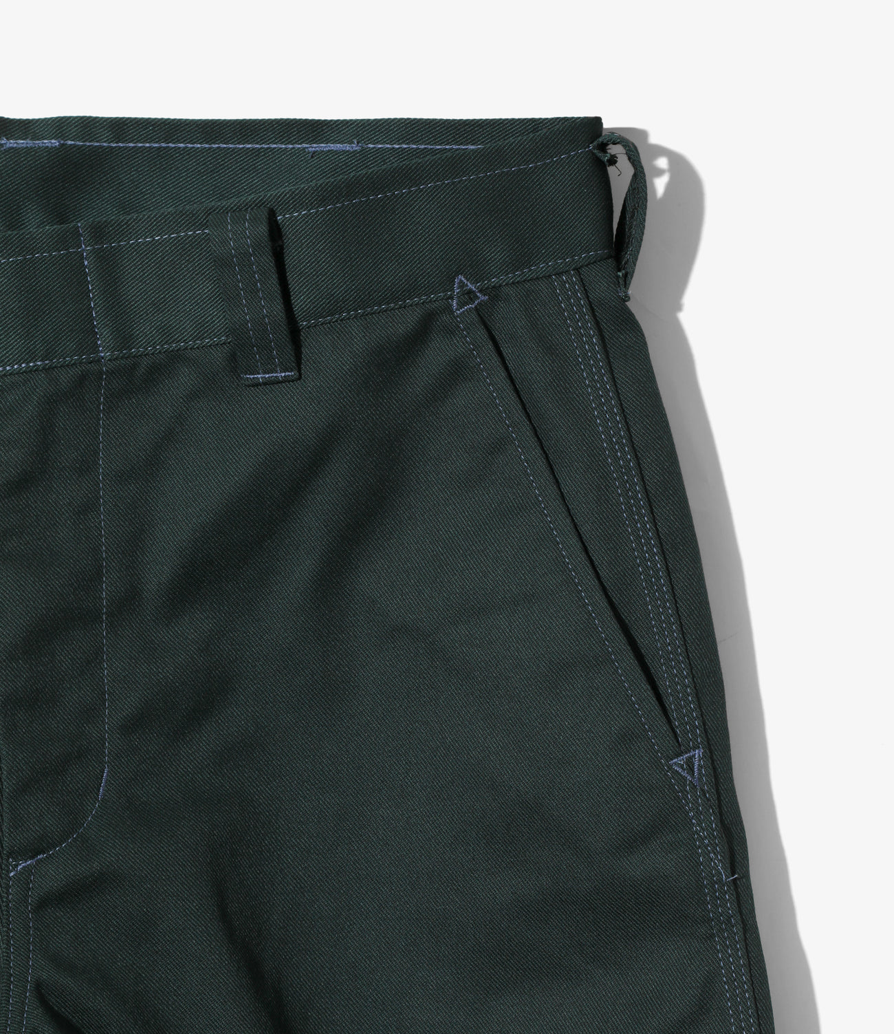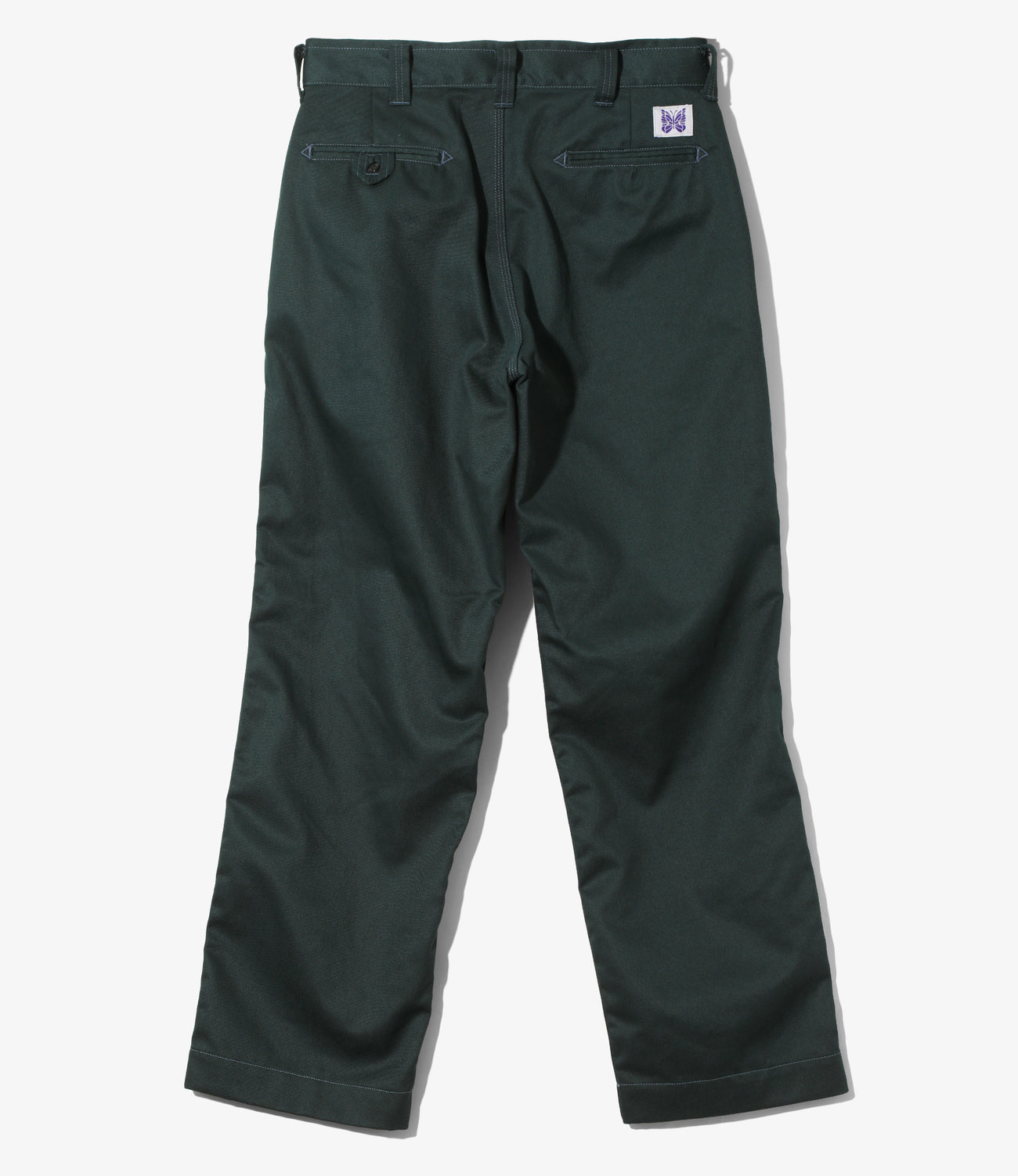 シンプルなワークパンツですが、〈NEEDLES〉らしいアレンジを加えて登場しました。背面の両玉縁ポケットや、シックなカラーのポリエステルコットン地に映えるステッチカラーが、特徴的で目を引くデザインになっています。