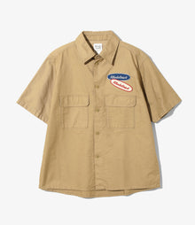 <RHODOLIRION>今シーズンのテーマ ”WORK WEAR" を象徴する、アメリカナイズドされたワークシャツ。大きなフラップポケット、オリジナルで製作されたブランドロゴワッペンが施されたショートスリーブシャツになります。素材は強度と軽さを兼ね備えたホップサップ素材。細番手の糸を平織りで織りあげ、麻袋のような粒感のある表面感が表情豊かです。通気性もよく、耐シワ性にも優れています。