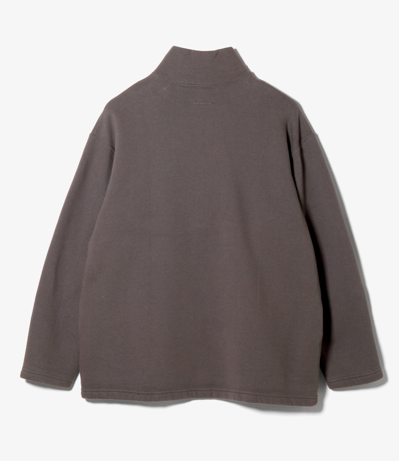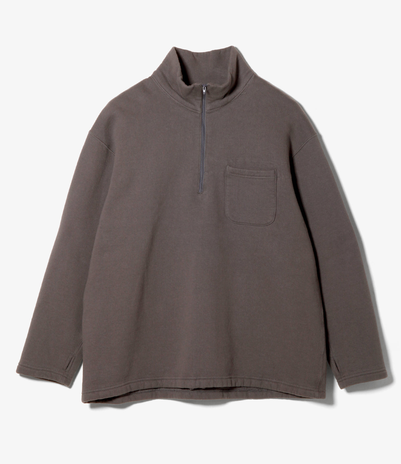 スタンドカラーにジップフロントのベーシックなデザインのプルオーバーシャツ。左胸にパッチポケット、裾にはドローコードが付属しています。12ozの肉厚なフリース素材で、非常にユーティリティの高い素材です。