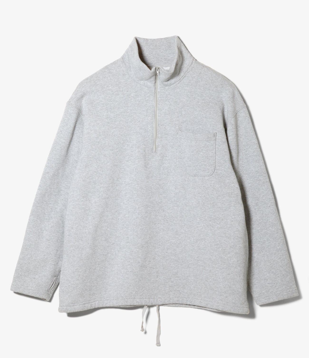 スタンドカラーにジップフロントのベーシックなデザインのプルオーバーシャツ。左胸にパッチポケット、裾にはドローコードが付属しています。12ozの肉厚なフリース素材で、非常にユーティリティの高い素材です。