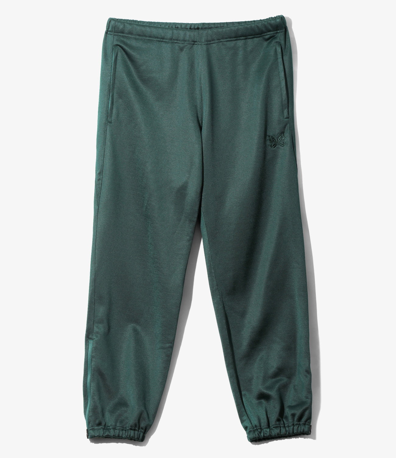 〈NEEDLES〉の定番として展開される、光沢感のあるジャージー素材を使用したスウェットパンツ。ウエストはストリング仕様、裾にはジップが取り付けられたクラシックなデザインとなっています。通気性、伸縮性に富んだ光沢感のあるジャージー素材を使用した、スポーティでスタイリッシュな一着です。