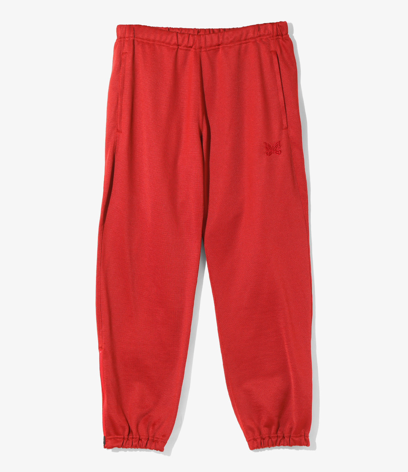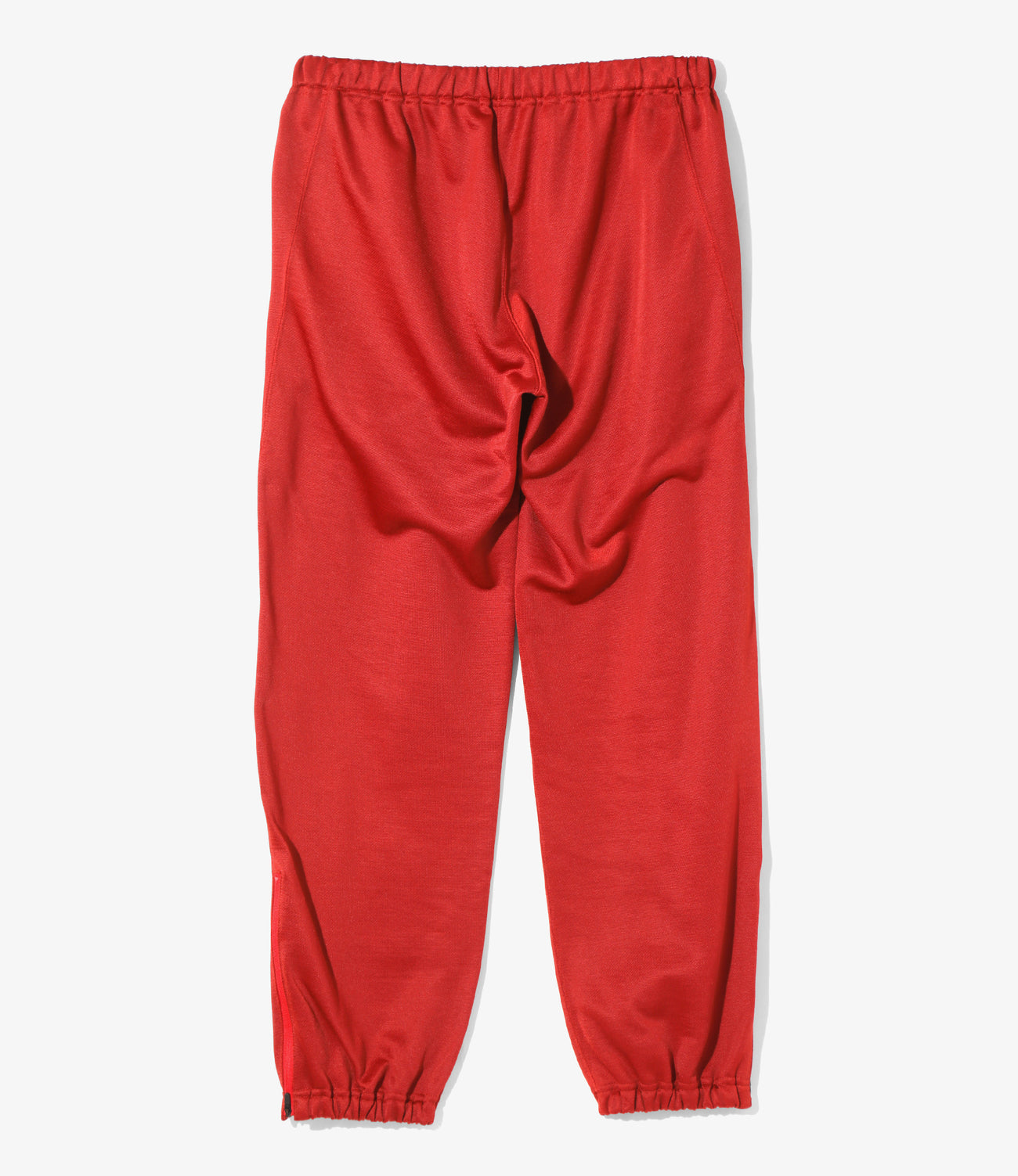 〈NEEDLES〉の定番として展開される、光沢感のあるジャージー素材を使用したスウェットパンツ。ウエストはストリング仕様、裾にはジップが取り付けられたクラシックなデザインとなっています。通気性、伸縮性にも優れ、機能性とファッション性を兼ね備えた一本。幅広いスタイルで活躍するユーティリティ性の高い一着で、25年秋冬シーズンはレッド、ダークパープル、ブラックの3色展開。